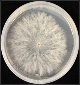 Culture of the Southern blight pathogen (Arothelia rosflii) grown on agar media
