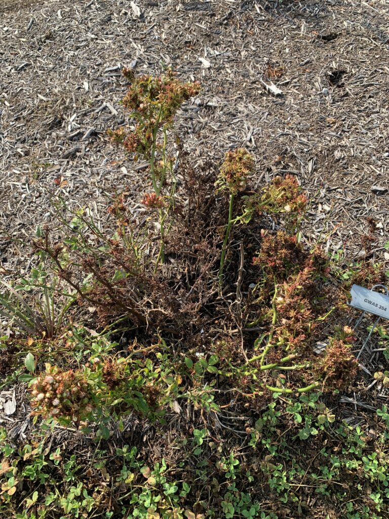 Our collaborative USDA SCRI-funded Sustainable Rose Project is a multi-state project aimed at developing sustainable rose landscapes through Rose Rosette Disease (RRD) education and breeding RRD resistant roses with stable black spot resistance. RRD is caused by rose rosette virus (RRV), is a widespread threat in the USA to rose producers, landscapers, and consumers. RRD has been destroying thousands of roses in landscapes, private/public gardens and wholesale/retail nurseries. RRV spreads from infected to healthy plants via the eriophyid mite Phyllocoptes frucitphilus (pf). Once the virus infects the roses, the plant dies within weeks to a few years. Therefore, finding host resistant against virus and mite is crucial for RRD management. For more information visit: roserosette.org.